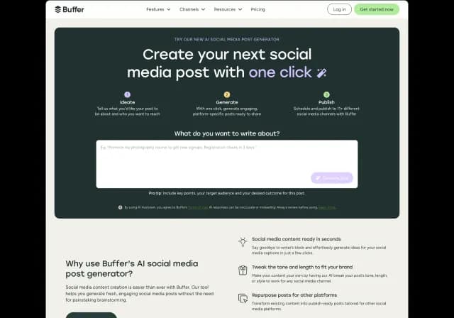 Whether you’re flying solo or working with a team, Buffer has all the features to help you create, organize, and repurpose your content for any channel. There’s also an AI Assistant if you need it.